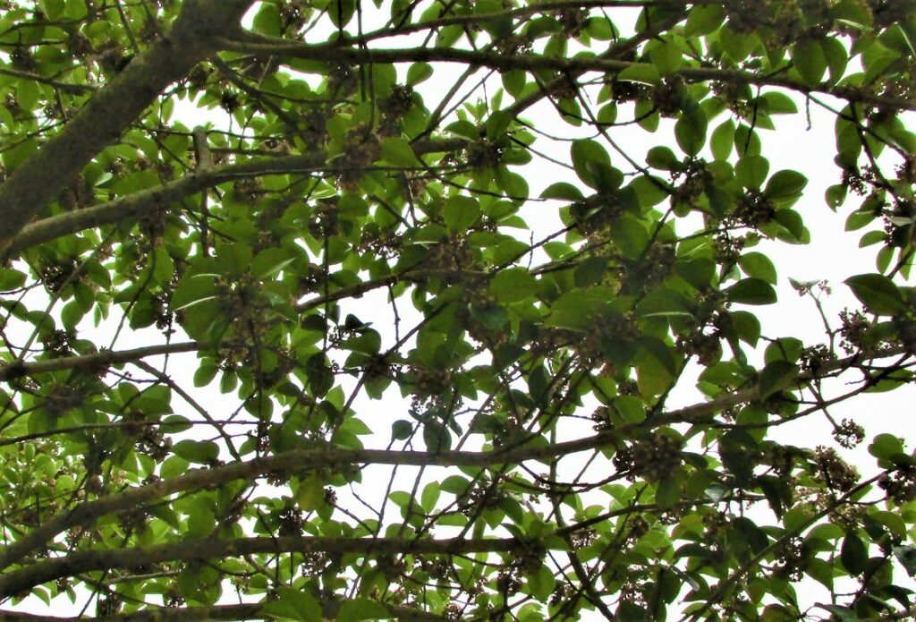 無数のミツバチが、このクロガネモチの木の「蜜」に誘われて、とても沢山飛んでいるのでした。