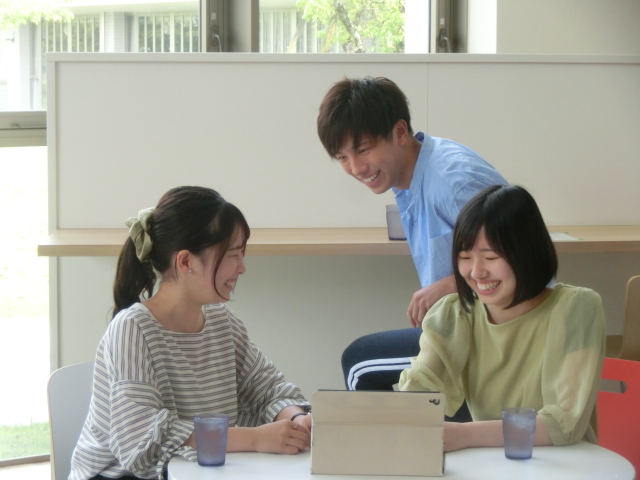 ※授業外のヒトコマ。こうやって友人たちとおしゃべりする時間も、カジュアルな大学生活の一場面です。