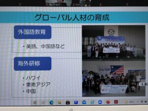 次いで、4年生斎木玲於くんが自身のキャンパスライフの紹介をしました。