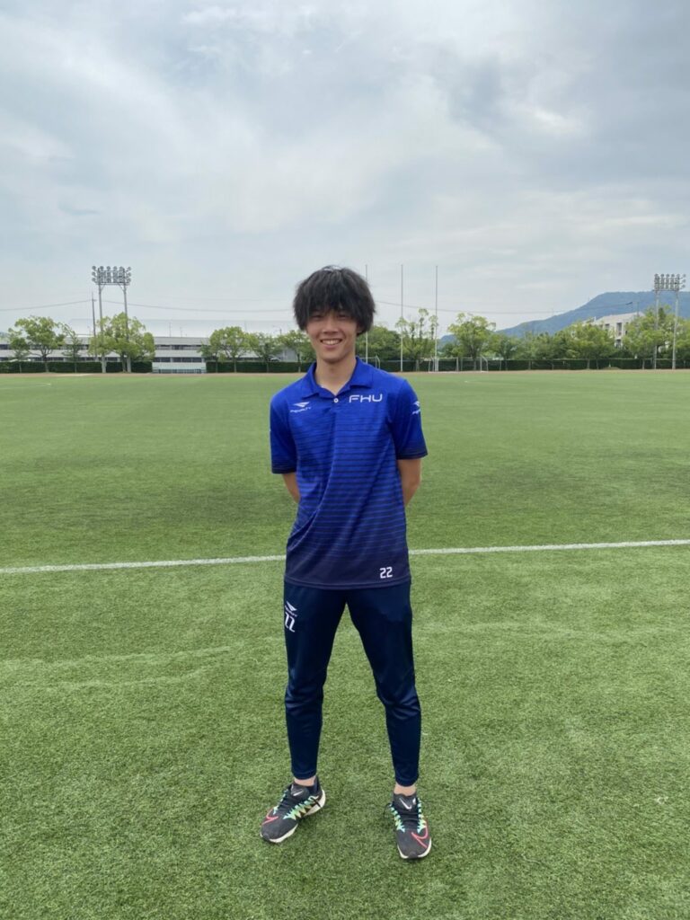 サッカー部に所属しています。福山平成大学のサッカー部は、中国大学サッカーリーグの1部に組み込まれています。そのため、対戦相手も強豪校ばかりで、いつも厳しい試合となります。そのため練習はほぼ毎日なので、勉強との両立を図ることが目下の課題です。。ポジションは、センターバックです。センターバックの難しさは、味方と対戦相手の全ての動きを把握し、適切な判断を下しながらプレーすることですね。