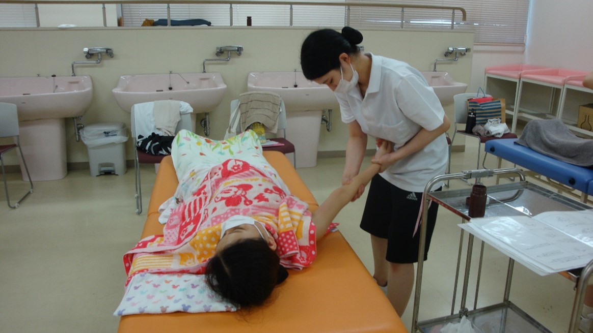 助産学実習が始まり、緊張した毎日が続いておりますが、この演習では学生同士でマッサージを体験し、アロマの香りに癒され、心も身体もほぐれたようです。今回教わった技術をこれから関わる対象者に活かしていってほしいと思います。