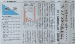 掲載されたのは、昨年から、広島県中小企業家同友会福山支部と一緒に行っている「Covid-19の中小企業経営への影響に関する調査」の一部です。