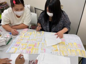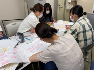4年生は今、看護研究に取り組んでいます。質的分析のため、ラベルワークに集中しています。