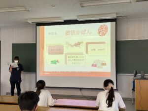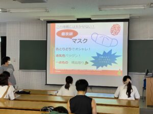 作成したPOPをクラスメートの前でプレゼンを行い、互いに評価し、もっとよくするための提案をした上で、さらに修正を行う手順で進めました!