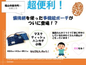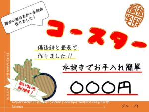 よくお店で見かけるPOPですが、これまでの授業の学びを活かして、備後地方の伝統産業の強みや障害者福祉サービスとのコラボをイメージして作るようにしました。