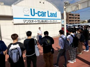 先日、経営学科の2年生が北村自動車(株)(マツダオートザム福山南)を訪問・見学しました。
