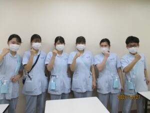 コロナ渦で、オンライン実習が続いていましたが、ようやく成人看護学実習で病院実習に行くことができました。急性期の実習では、手術を受ける患者様の看護を学び、実践します。受け持たせていただく患者様や、指導してくださる看護師さんに日々感謝しながら、臨床の場で実習を頑張っています。
