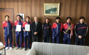 帰福後、選手たちが坪井 始学長を表敬訪問し報告を行いました。