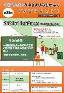 11月20日に平大認知症カフェ(みゆきよりみちかふぇ)をオンライン開催します。