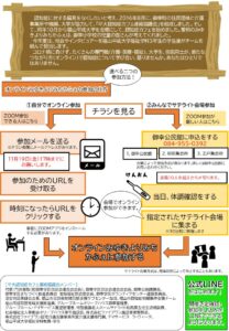 参加をご希望される方は、事務局藤井宏明のメールアドレスh-fujii@heisei-u.ac.jpにメールでお申し込みください。折り返し、IDとパスコードをご連絡いたします。福山市の補助金で運営しております認知症カフェですから、参加は無料です。福山市御幸町にお住まいの皆様は勿論、福山市外の方でもどなたでもご参加いただけます。多数の皆様のご参加をお待ちしております。