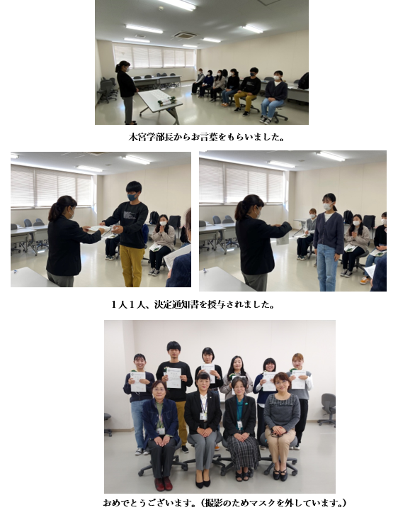 本学入学者のうち学業成績、人物ともに優秀な学生に授与される一般奨学生の決定通知授与式が行われました。