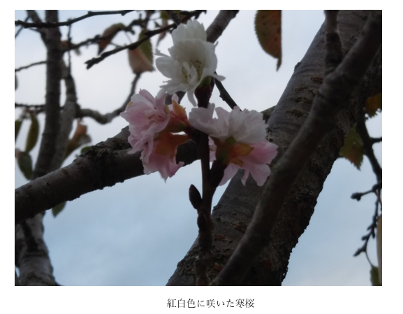 今、キャンパスには桜が咲いています。しかも、紅白の桜です。