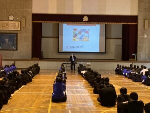 11月10日(水)には石橋学科長が福山市立駅家南中学校の2年生の生徒に喫煙や飲酒、薬物防止の講習を行ってきました。