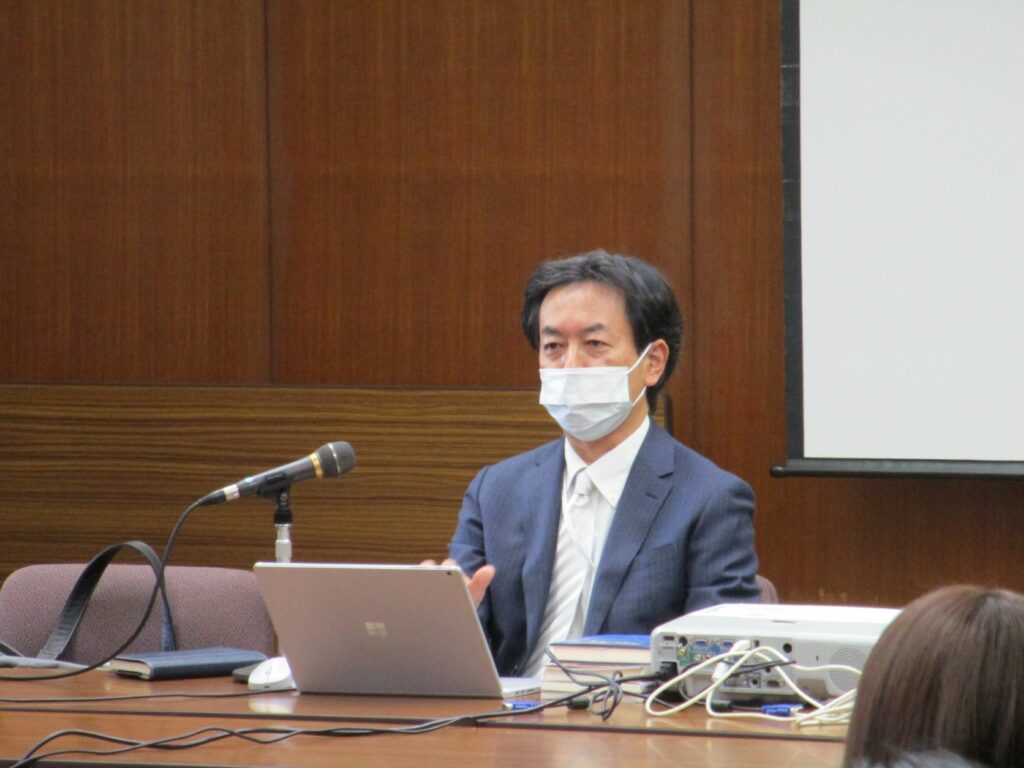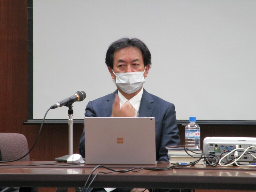 今回のお話は、広島大学の国語文化系の先生方が学生さんに「講演会で話を聞いてみたい人」のアンケートをとったところ、三藤学科長の名前が一番多く上がったそうで、「光栄なこと」とお引き受けしたそうです。