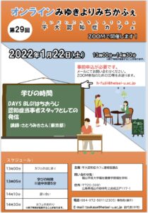 オンラインみゆきよりみちかふぇ(平大認知症カフェ)を開催します。1月22日(土)13時からZoomで行います。