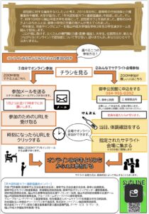 参加をご希望される方は、事務局藤井宏明のメールアドレスh-fujii@heisei-u.ac.jpにメールでお申し込みください。折り返し、IDとパスコードをご連絡いたします。福山市の補助金で運営しております認知症カフェですから、参加は無料です。福山市御幸町にお住まいの皆様は勿論、福山市外の方でもどなたでもご参加いただけます。多数の皆様のご参加をお待ちしております。