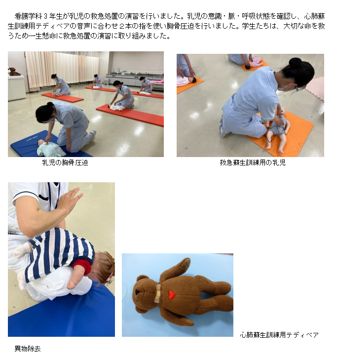 3年生「小児看護援助学」で救急処置の演習を行いました