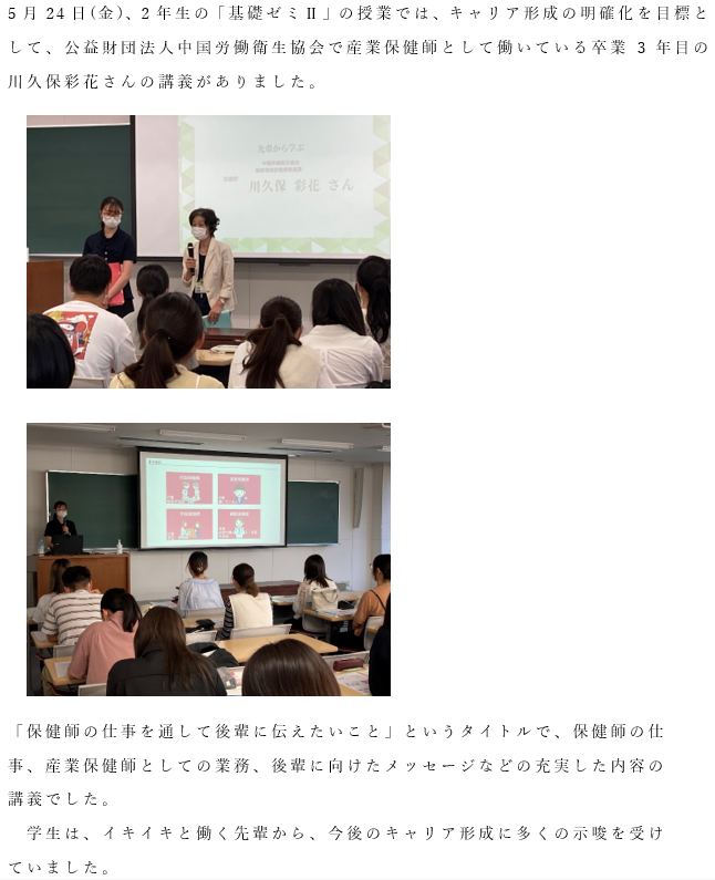 【看護学科】保健師として活躍している先輩から講義を受けました