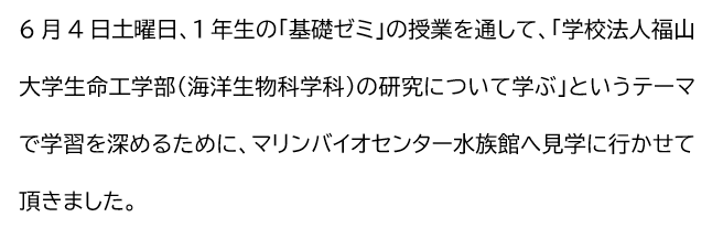 【看護学科】1年生 福山大学の「内海生物資源研究所」に見学に行きました。 (午前の部)