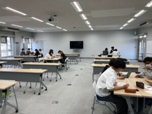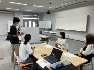 今回から,受講者の皆さんはグループワークに取り組んでいます。グループワークの課題は「100円ショップの売り場提案をしてみよう」です。