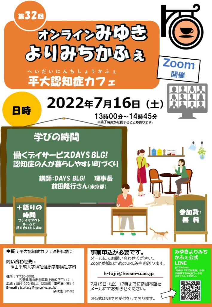 7月16日に平大認知症カフェ(みゆきよりみちかふぇ)をオンライン開催します。