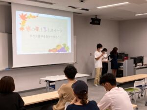 各チームが設定したテーマは,「新学期」「食欲の秋」「ハロウィン」「運動会」「防災」でした。それぞれのチームごとに,どんな人たちをターゲット(お客さん)にするのかを考え,ポップを工夫したり,商品の並べ方を試行錯誤したりして,素晴らしい5つの提案がなされました。