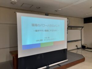 講演では、どこからがハラスメントになってしまうのか、またどうすればハラスメントにならないのかなどを中心にお話をされました。