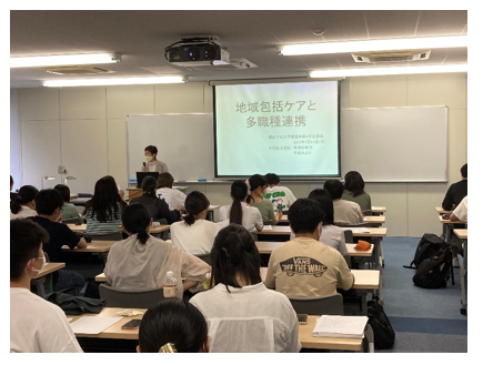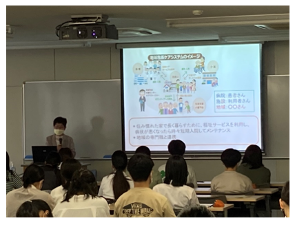 7月11日4年生の『看護管理学』講義は、寺岡記念病院看護部参与であり、認定看護管理者の甲斐みどり先生より「地域包括ケアと多職種連携」について学びました。2025年には、団塊の世代が75歳を迎え「超高齢社会」に突入します。