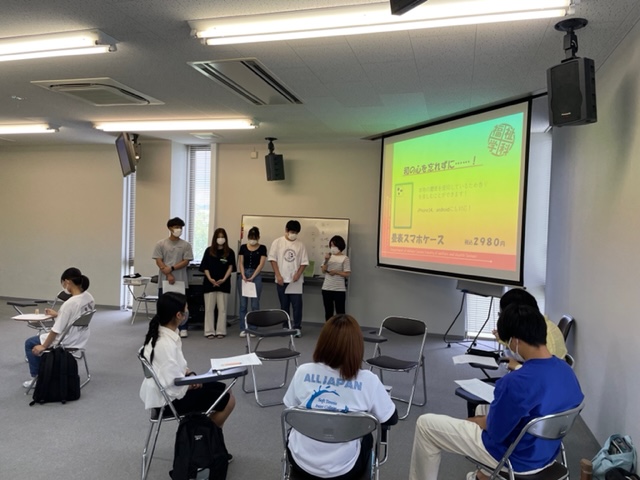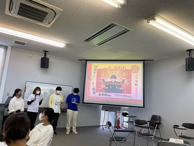 この日はポップをプレゼンし、どこのグループが一番工夫していたかを競う大会をしました。銀河学院高等学校の生徒さんも一緒にプレゼン大会に参加してくれました。