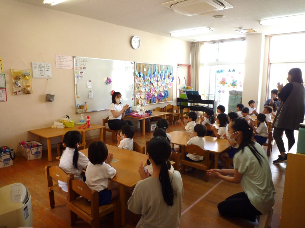 小野准教授は、これまでの豊富な保育現場での経験を活かし、学内での指導はもちろんのこと、写真のように幼稚園や保育所の現場に学生を連れていき指導することに力を入れている先生です。