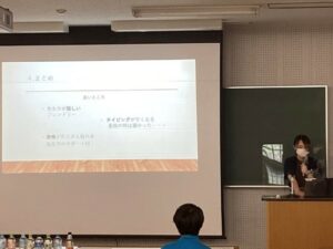 模擬講義のあとには、2人の在学生(4年生)が自身のキャンパスライフを紹介しました。