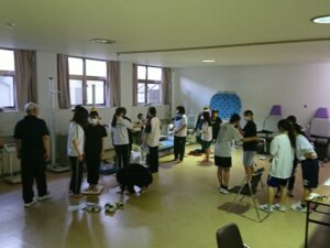 また看護学科の学生にとって初めての測定となった、全身反応時間、ステッピング、足指筋力、ファンクショナルリーチなどの測定では、健スポの学生や地域の方の結果と比較し、一喜一憂しながらの測定となりました。