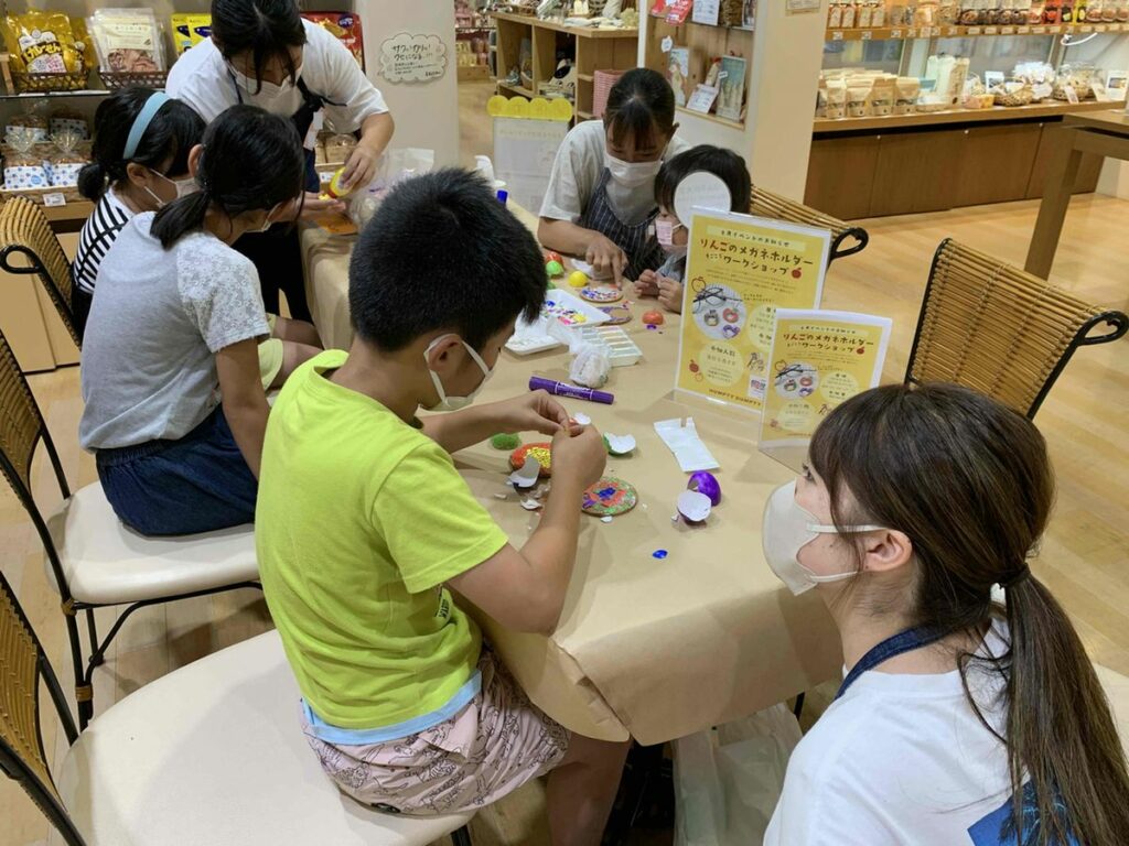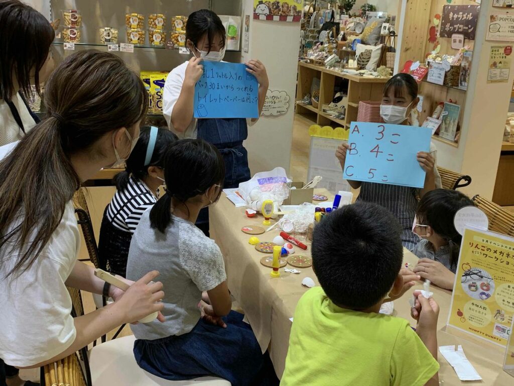 こども学科の学生とハンプティーダンプティーさんとのコラボ企画「あそびとまなびの工作ワークショップ」がハンプティーダンプティー福山北店で開かれました。