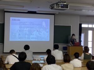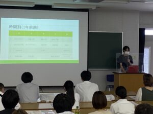 模擬講義のあとには、2人の在学生(4年生)が自身のキャンパスライフを紹介しました。