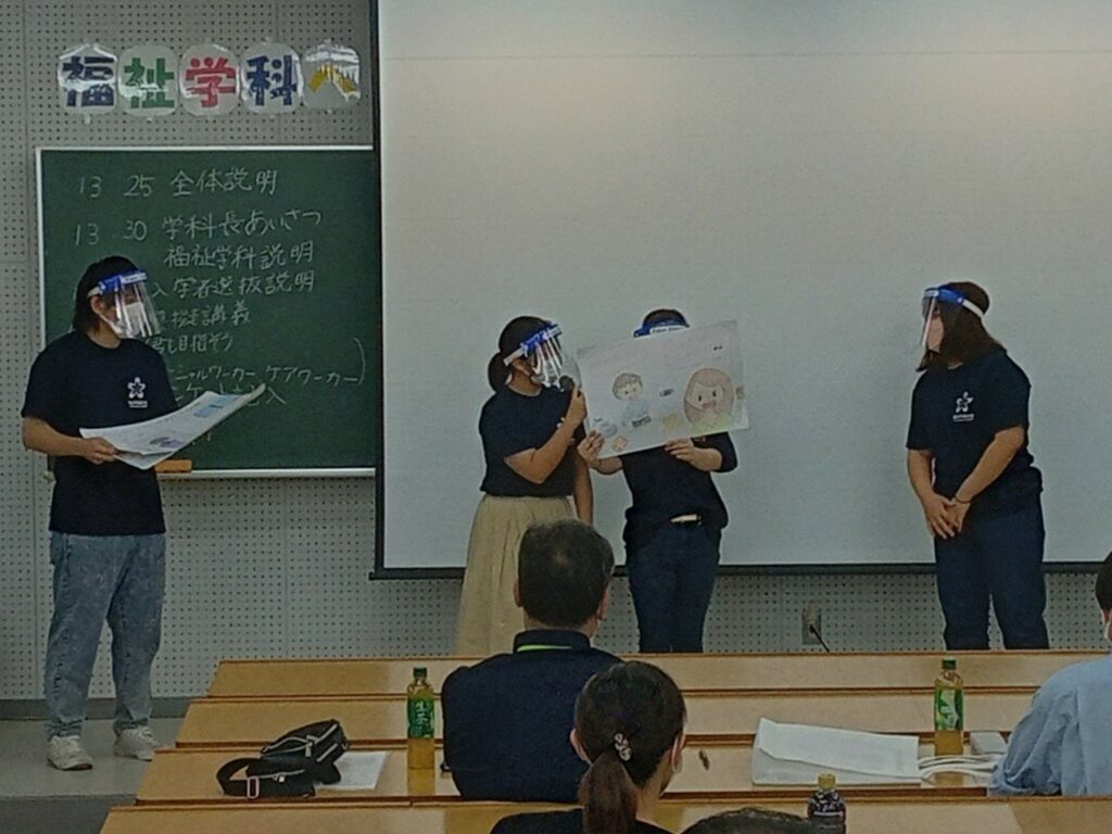 福祉学科と入学者選抜制度についてそれぞれ説明した後、模擬授業を行いました。