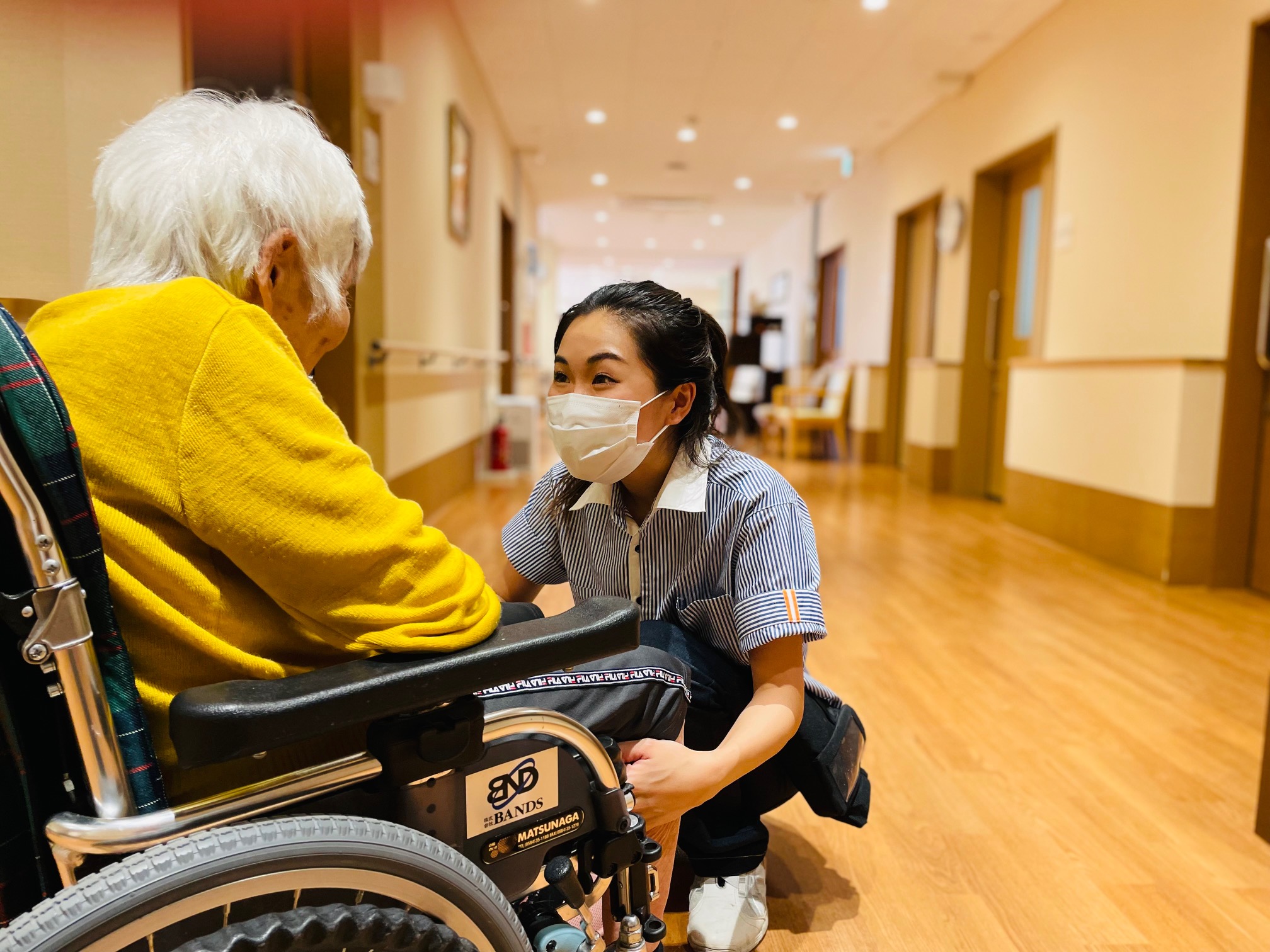 A:特別養護老人ホームで介護をしてます!排泄介助とか、とにかく日常生活全般の介助です!