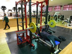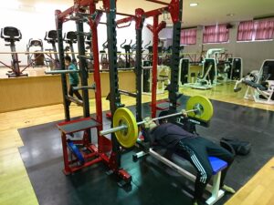 パワーラック設置後、早速学生たちがトレーニングをおこなっていました。