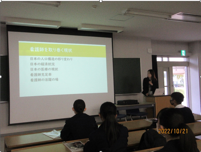 この講義の後、高等学校「課題探求」の授業で「看護師」についての研究を進めるという事です。