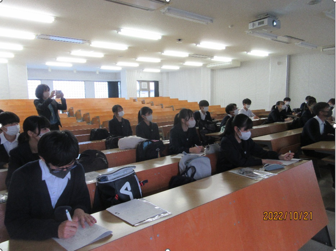 10月21日(金)広島県立葦陽高等学校2年生23名が看護学科を訪問し、12号館の看護棟を見学後、岡学科長より学科説明、中川講師より「看護師を取り巻く現状と課題」「事前の生徒からの質問に対する回答」を聞きました。