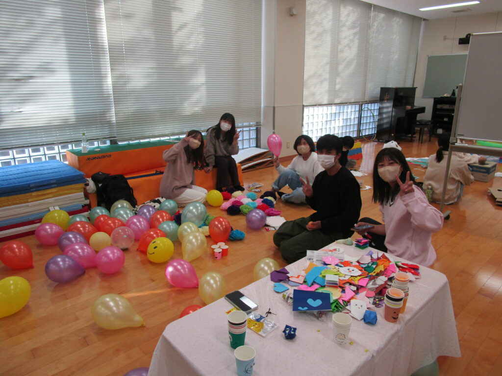 楽しそうに取り組む大学生の様子をみると、大学祭は、授業外の時間で取り組むもの…と、イメージされる方もいらっしゃるかもしれませんね。けれども、こども学科は本年度よりこれを教育内容に位置づけ、「子どもの遊びの中に子どもの学びがある」の考えで、学生たちも自身の「学び」として取り組んでいます。