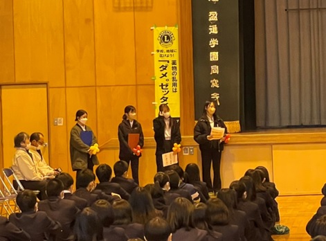 11月下旬に福山北ライオンズクラブの皆さんと大学生4人と盈進高校1年生を対象に薬物乱用防止教室を開催させていただきました。