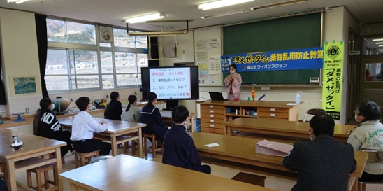 12月上旬に福山北ライオンズクラブの皆さんと山野小学校の生徒さんを対象に薬物乱用防止教室を開催させていただきました。