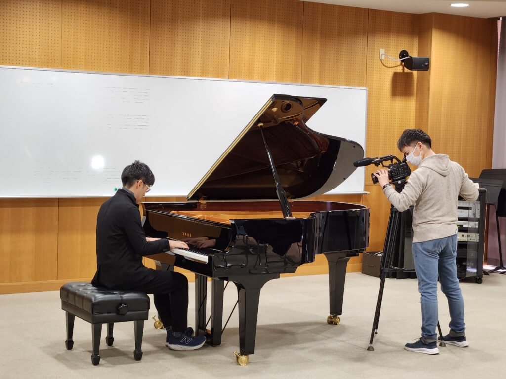 こども学科では、伊藤憲孝教授のピアノ演奏が、収録されました。きっと美しい音色が、ムービーに彩を添えてくれるはずです! 出来上がりが楽しみですね!