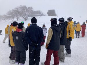 学生たちはこれまでのスキー、スノーボードの経験やレベル別に分かれて、各班別のプログラムに取り組みます。