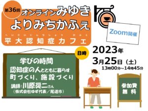 オンラインみゆきよりみちかふぇ(平大認知症カフェ)を開催します。3月25日(土)13時からオンライン方式で行います。