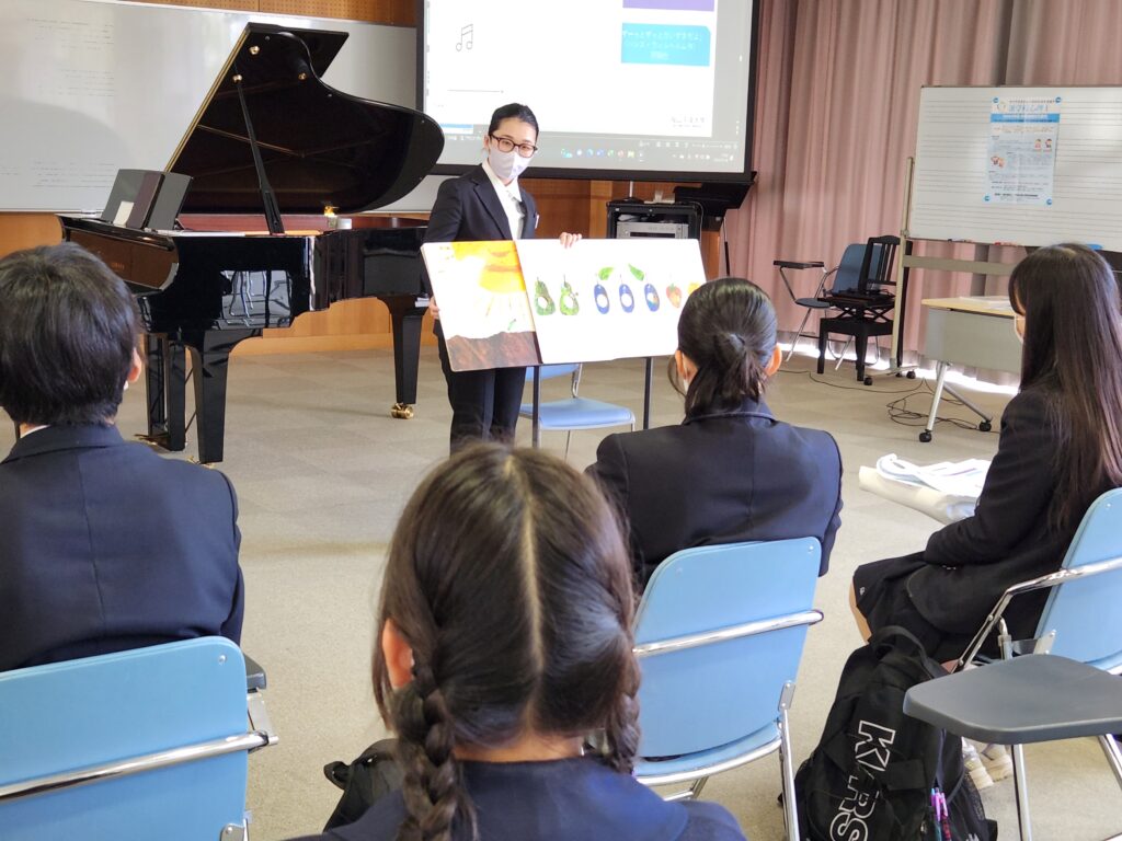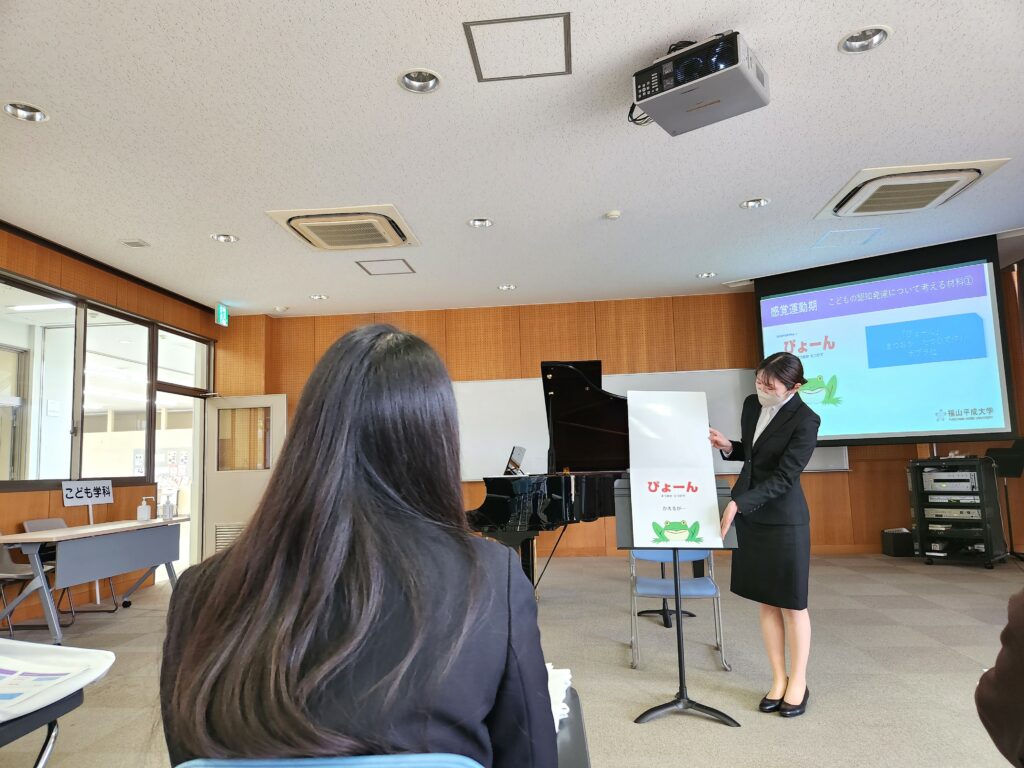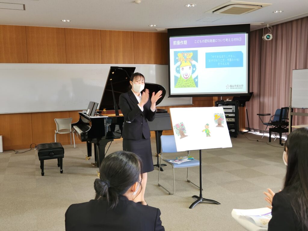 川島ゼミの学生さんたちが登場し、読み聞かせを歌を交えたり、パネルシアターを交えて披露してくれました。「表現力」「創造力」の育成へ力を入れるこども学科ならでは授業を、きっと存分に楽しんでくださったものと思います。