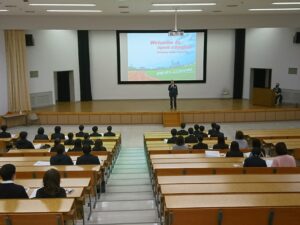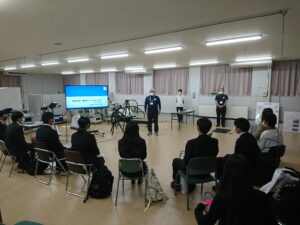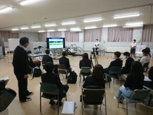 また学生たちの卒業研究の紹介があり、サッカーのキック動作や野球のピッチング動作など様々なスポーツの動作解析をおこなっており、参加した高校生も興味深く話を聞いていました。