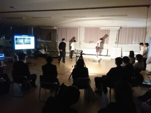 まずは、バイオメカニクスや動作解析が専門の藤井講師の模擬授業です。カメラなどを使用して動作を撮影し、実際に動きを解析しました。