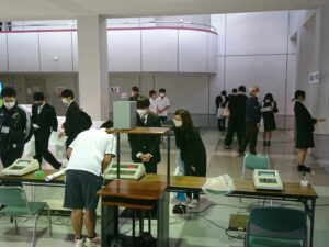 模擬授業後、『スポーツ科学を体験しよう』ということで、実際にスポーツ科学分野で用いられる測定機器を体験してもらいました。