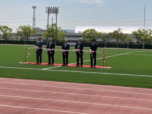 4月28日のオープニングセレモニーのテープカットには、サッカー部部長 健スポ4年 宮田陸君も参加しました。